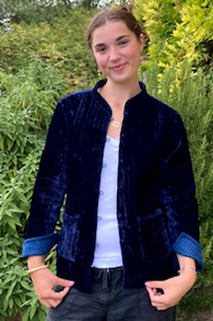 Elegant velvet jackets lined in vibrant colours
